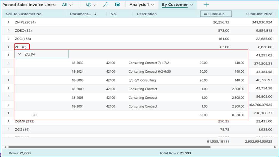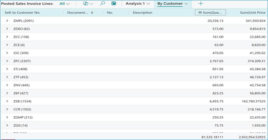 Here’s an example of using Analyze Mode on Posted Sales Invoices, starting with the default screen.